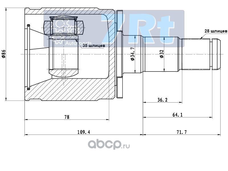 Шрус внутренний LH MITSUBISHI PAJERO/MONTERO V87/97
