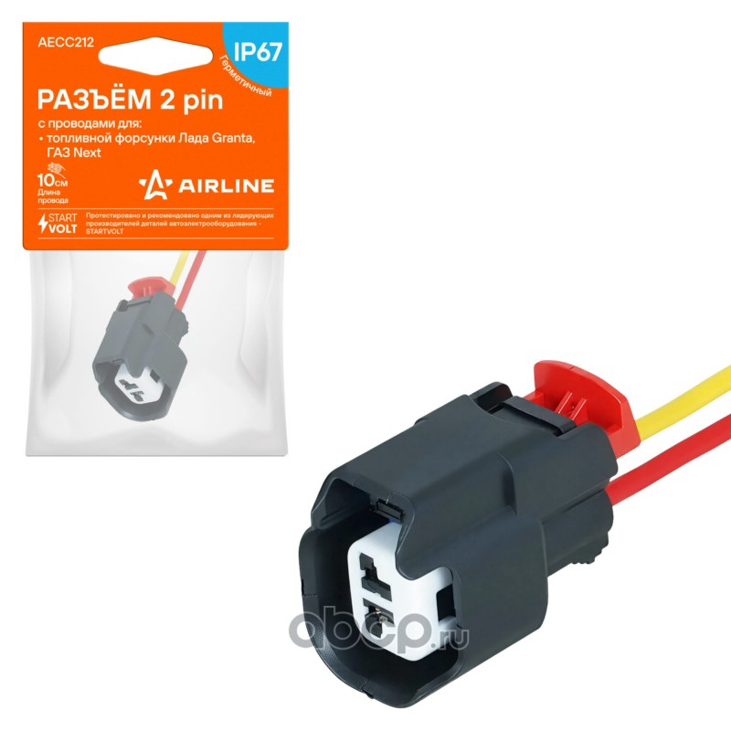 Разъем 2 pin с проводами для топливной форсунки Лада Granta, ГАЗ Next