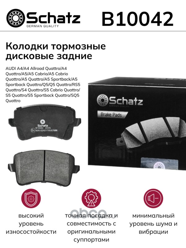 Schatz | B10042 | Колодки тормозные дисковые задние AUDI A4/A4 Allroad Quattro/A4 Quattro/A5 |