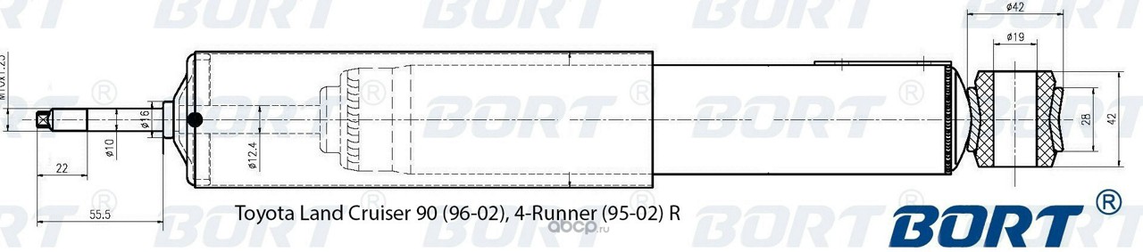 BORT | G11248003 | Амортизатор газомасляный задний для Toyota Land Cruiser 90 (96-02), 4-Runner (95-02) R |