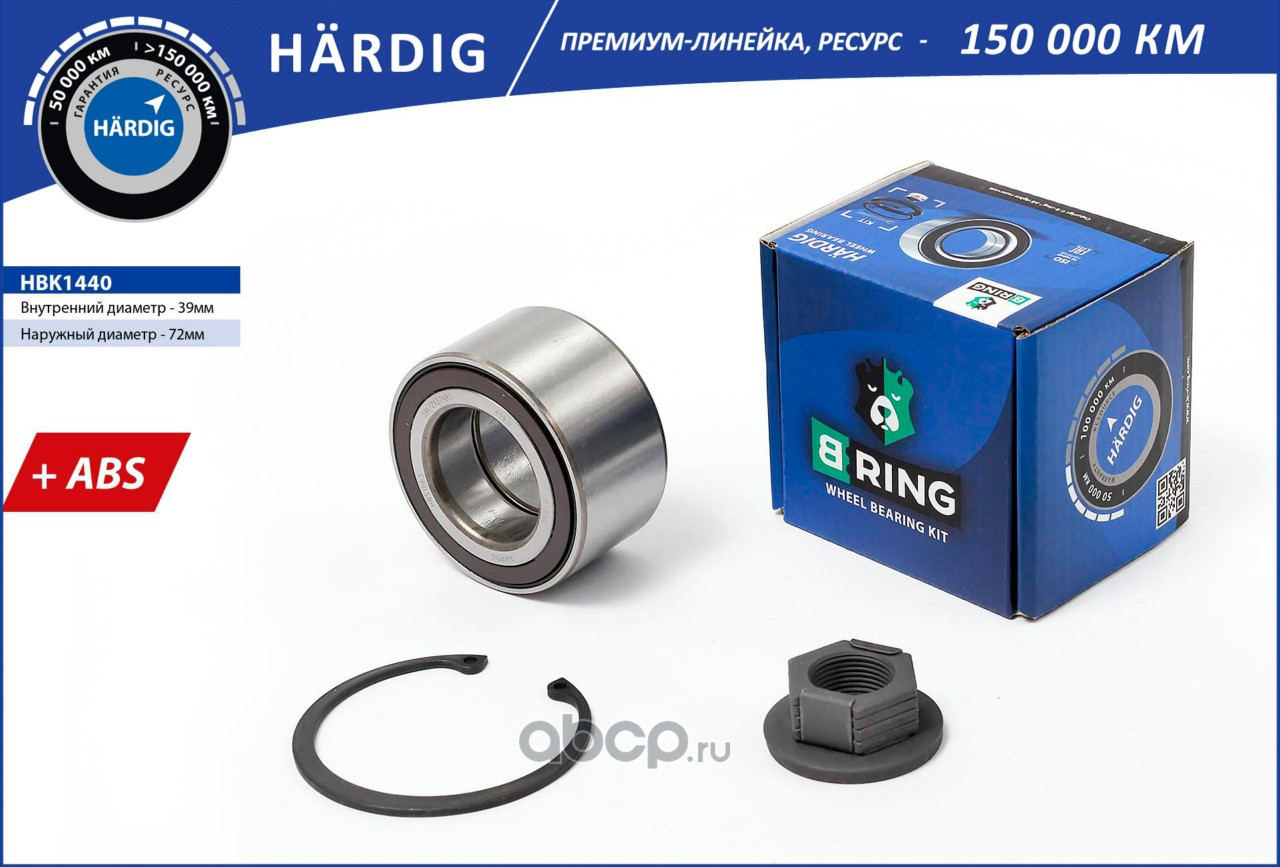 Подшипник ступицы FORD Focus (98-), MAZDA 2 (03-) (перед. компл.) [39x72x37 с ABS] (HBK1440) B-RING HÄRDIG