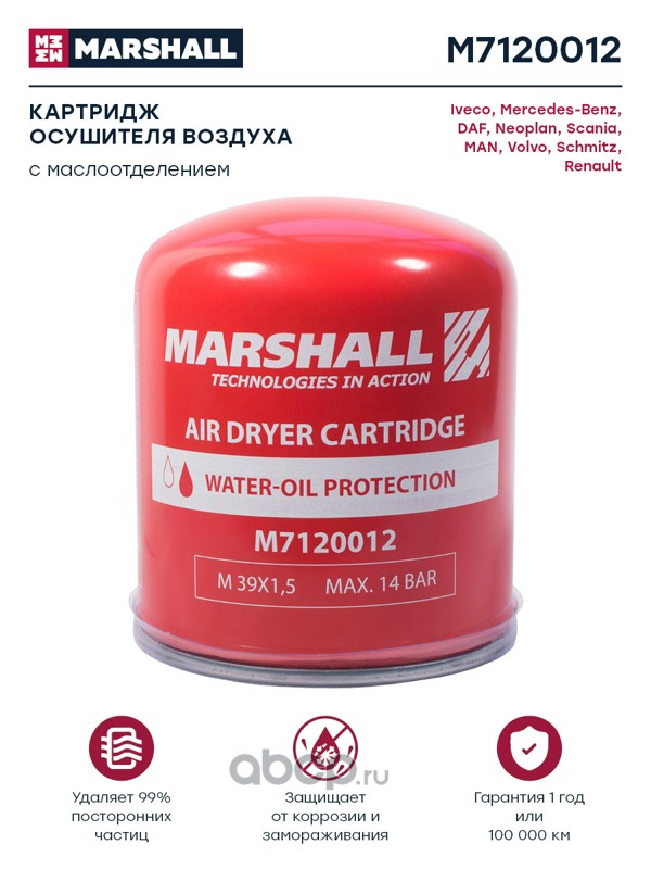 MARSHALL | M7120012 | Картридж осушителя воздуха с маслоотделением M39x1.5 о.н. 4329012232 (M7120012) |