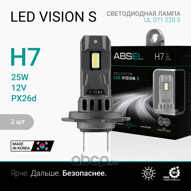 ABSEL | UL071220S | Лампа светодиодная ABSEL LED VISION S H7 12V 25 2шт |
