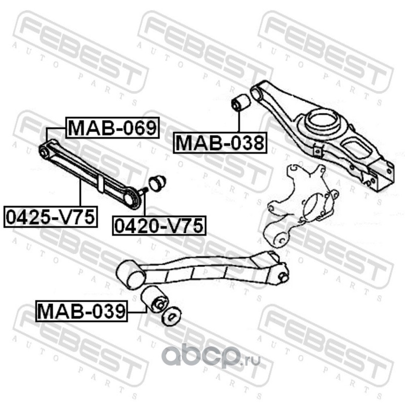 Febest | 0425V75 | Тяга задняя поперечная с шаровой |