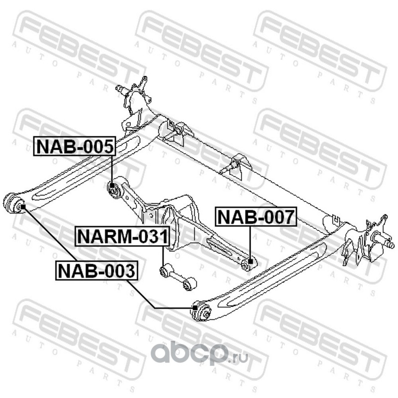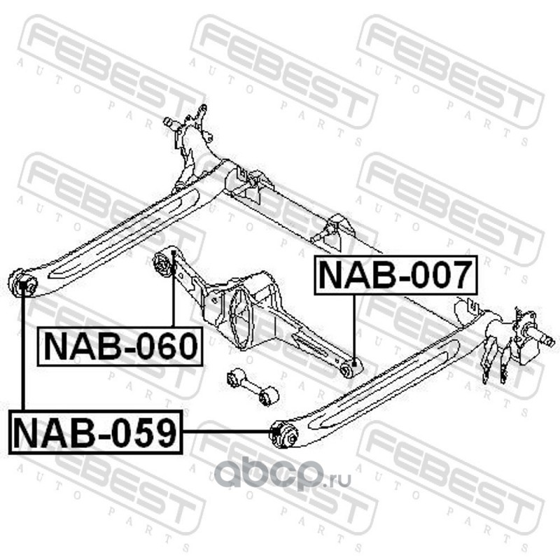 NISSAN | 55130AD000 | сайлентбл.зад.поперечн.тяги.лев. Nissan Almera N15 95-00 |