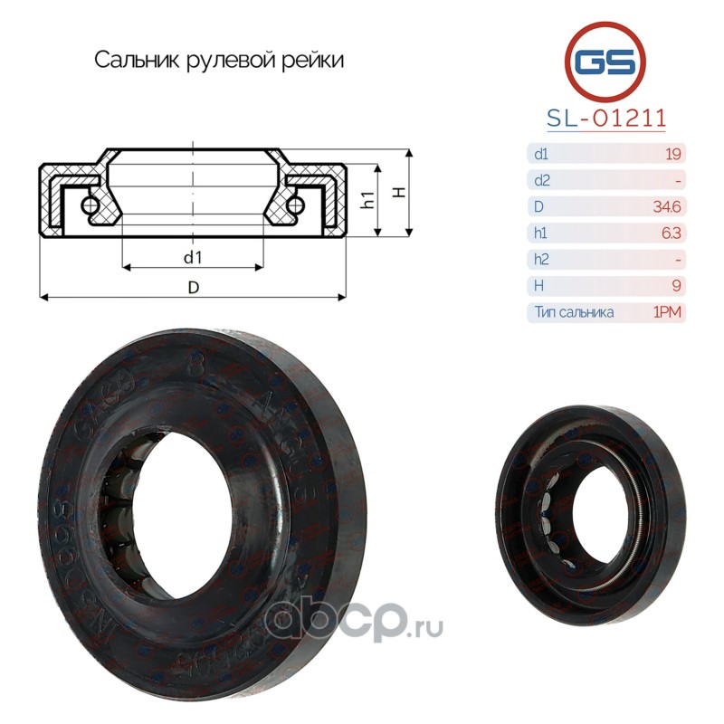GS | SL01211 | Сальник рулевой рейки 19*34.6*6.3/9 (1PM) |