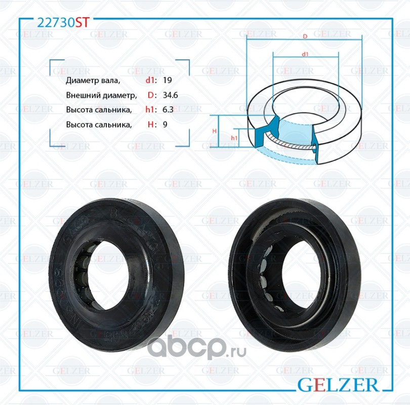 GELZER | 22730ST | Сальник рулевой рейки 19*34.6*6.3/9 (1PM) |
