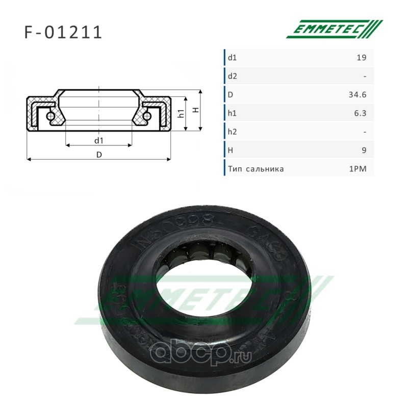 EMMETEC | F01211 | Сальник рулевой рейки 19*34.6*6.3/9 (1PM) |