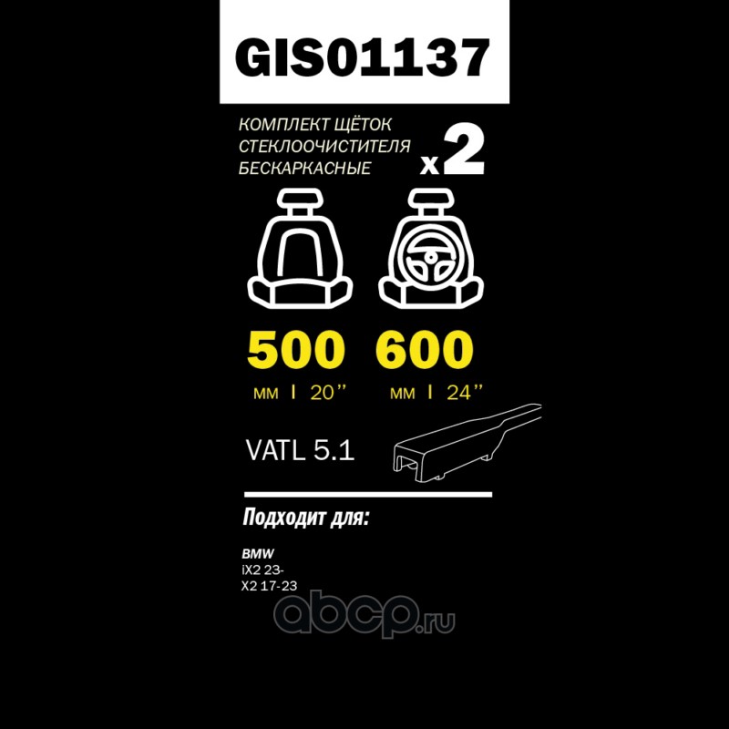 Щетки стеклоочистителя PRO-LINE (комп 2.шт L+R) 600mm+500mm BMW X2(F39) 2017->