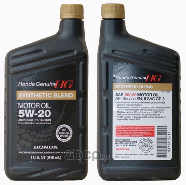 HONDA HG Synthetic SN 5W20 - всесезонное полусинтетическое моторное масло, рекомендуемое для бензиновых двигателей автомобилей Honda и Acura, выпускающихся для американского, европейского и японского рынка. Моторное масло HONDA HG Synthetic SN 5W20 предназначено для экономичных и экологически чистых двигателей. Отличные эксплуатационные характеристики при низких температурах. Использование моторного масла HONDA HG Synthetic SN 5W20 дают вам следующие преимущества: прекрасные пусковые качества; поддержание чистоты мотора; надежную защиту от износа и высокие динамические характеристики.