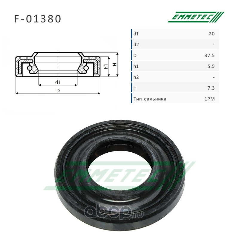 EMMETEC | F01380 | Сальник рулевой рейки 20*37.5*5.5/7.3 (1PM) |