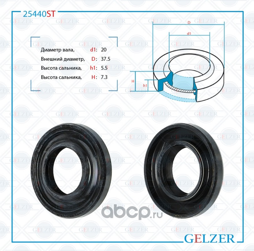 GELZER | 25440ST | Сальник рулевой рейки 20*37.5*5.5/7.3 (1PM) |