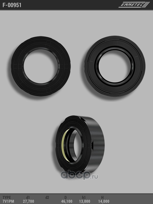EMMETEC | F00951 | Сальник рулевой рейки 27.7*46.1*13/14 (7V1PM) |