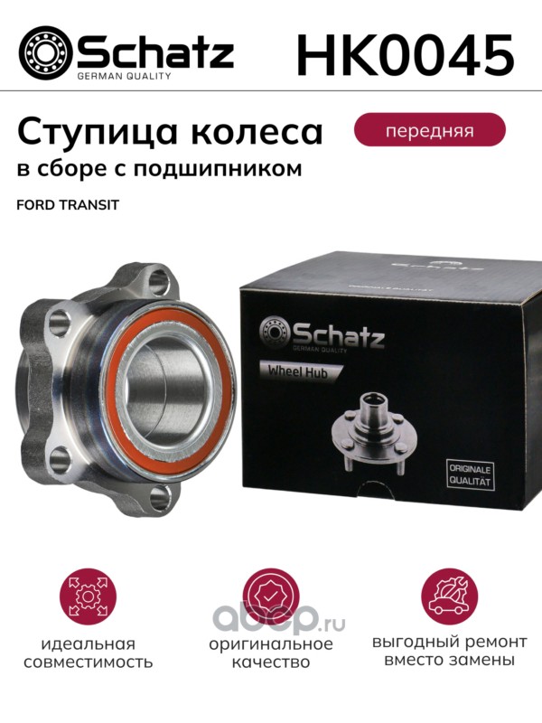 Schatz | HK0045 | Ступица колеса в сборе с подшипником (передняя) FORD TRANSIT |