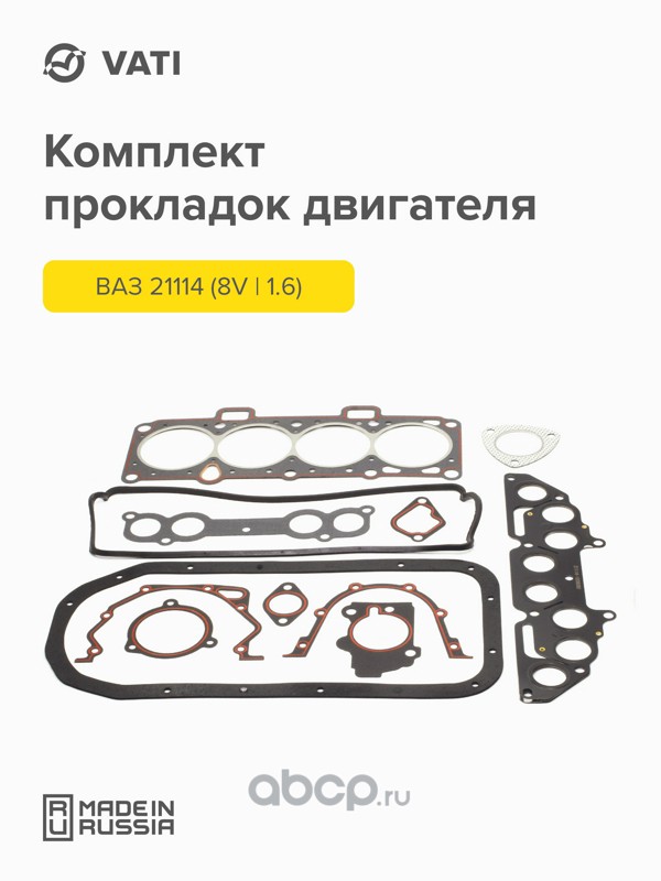 Вати-Авто | 21114BSVAN | Комплект прокладок для ремонта двигателя ВАЗ 21114 (большой) (8V/1,6 л) СТАНДАРТ NEW |