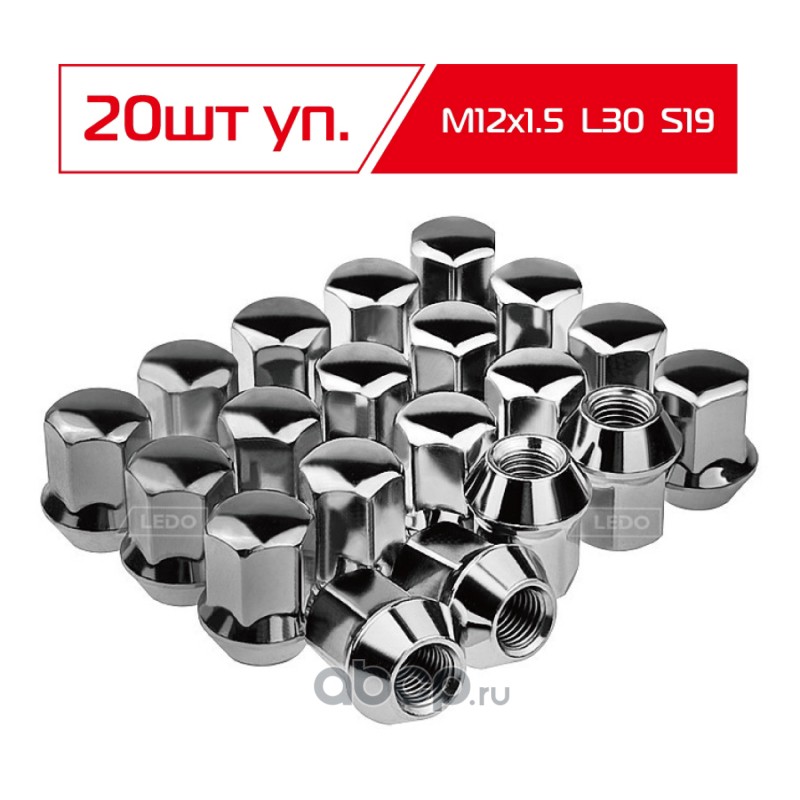 LEDO | AK78260 | Гайка колеса M12*1.5 L30 S19 конус хром |