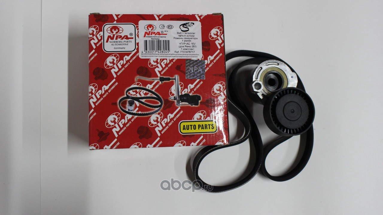 NPA | NP51101502 | Комплект ремень генератора(8200821816)+ролик(117509654R) +ГУР-АС 16V Рено (В0) |