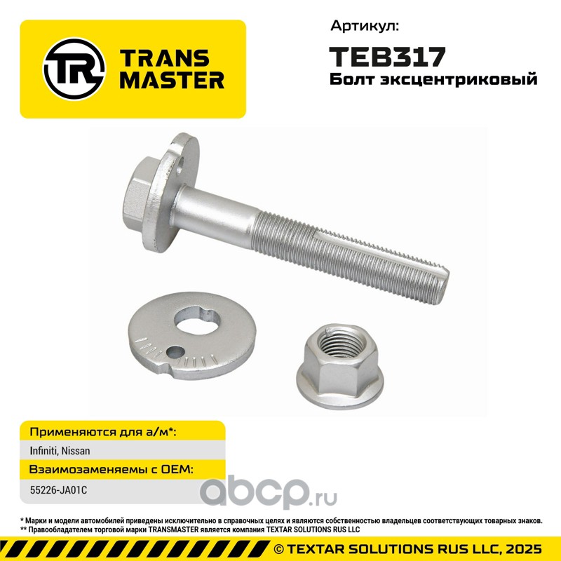 TRANSMASTER | TEB317 | Болт с эксцентриком для Infiniti, Nissan |