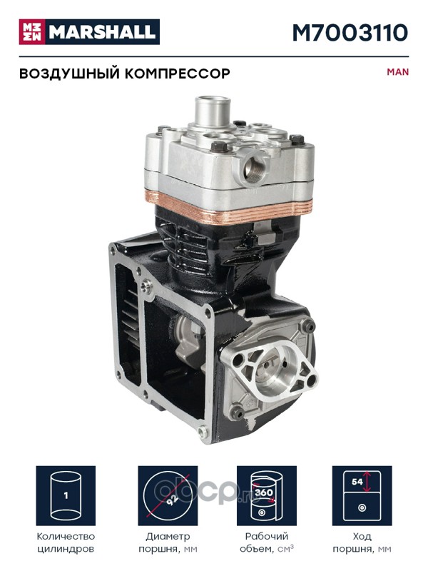 Воздушный компрессор MAN одноцилинд. 360 cc, о.н. 51.54100-7095 (M7003110)