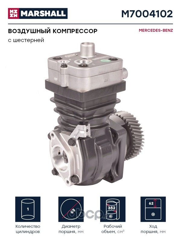 Воздушный компрессор MERCEDES-BENZ одноцилинд. 352 cc, с шестерней, о.н. 4111540040 (M7004102)