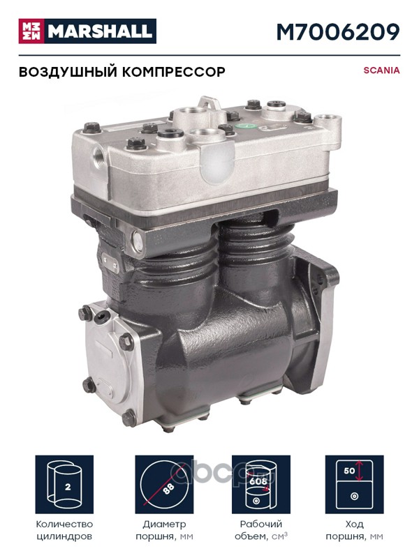 Воздушный компрессор SCANIA двухцилинд. 608 cc, о.н. K002975X00 (M7006209)