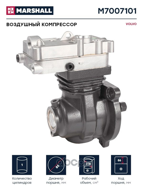 Воздушный компрессор VOLVO одноцилинд. 318 cc, о.н. 9121120010 (M7007101)