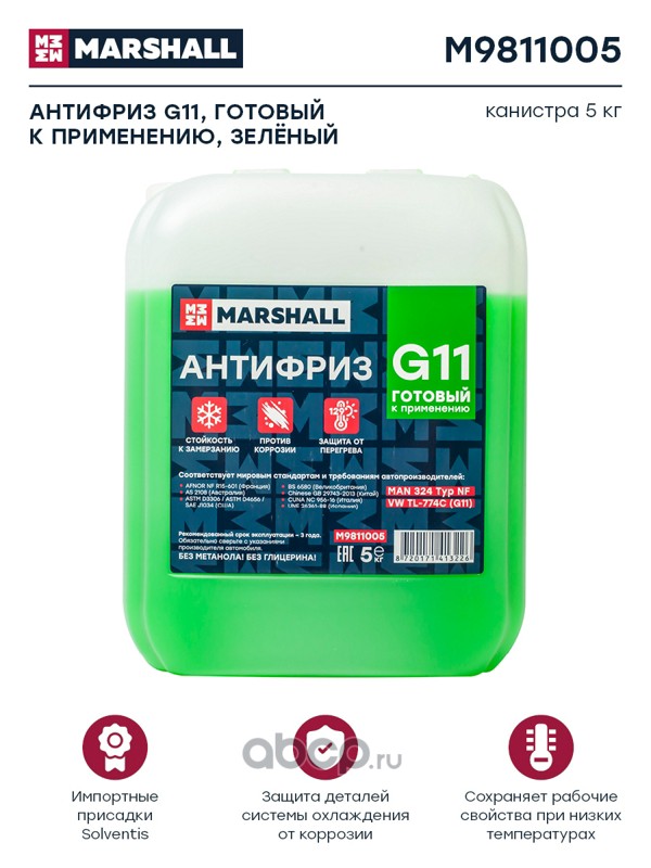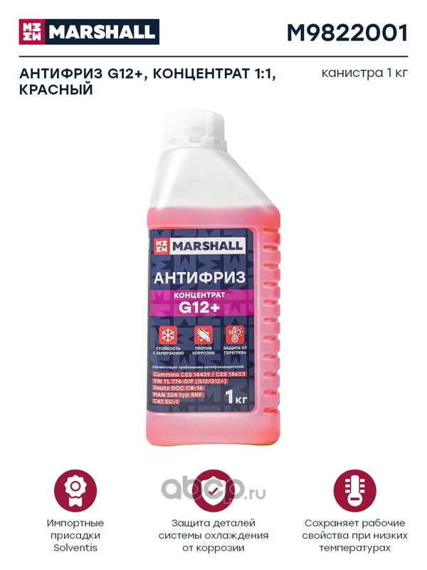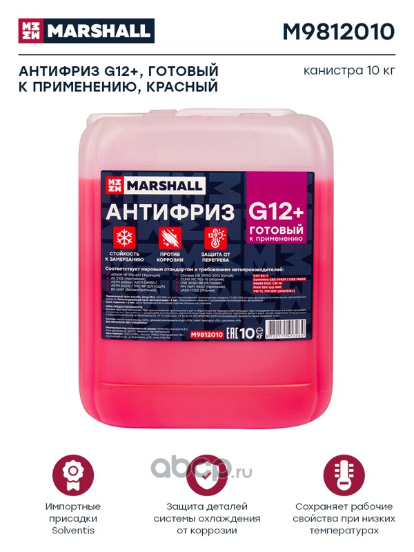 Антифриз MARSHALL G12+, готовый к применению, красный, канистра 5 кг. (M9812005)