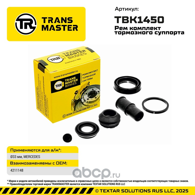 TRANSMASTER | TBK1450 | Ремкомплект тормозного суппорта |