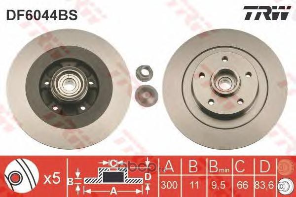 TRW | DF6044BS | Диск тормозной задний с подшипником RENAULT Laguna III 07-> / Latitude 10-> |