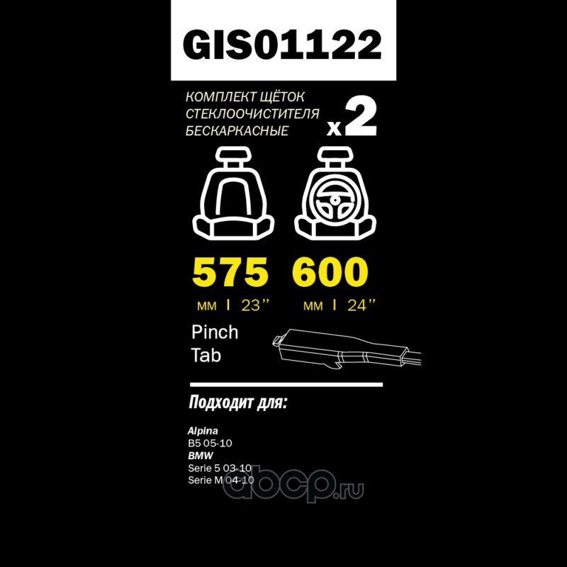 GANZ | GIS01122 | Щетки стеклоочистителя PRO-LINE (комп 2.шт L+R) 600mm+575mm BMW E60 10/03- aero |