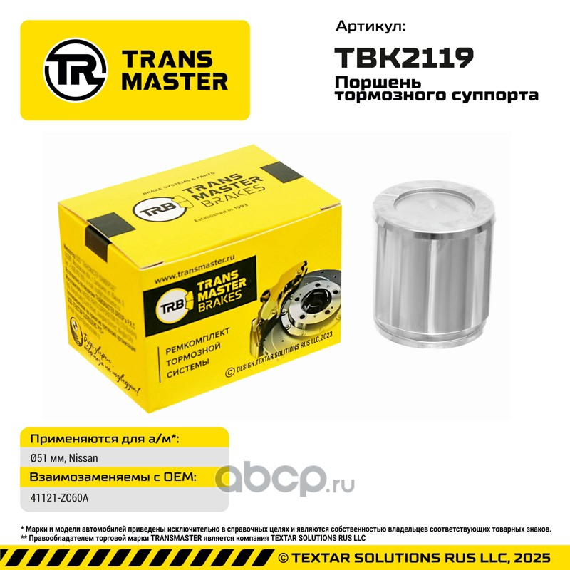 TRANSMASTER | TBK2119 | Поршень тормозного суппорта |