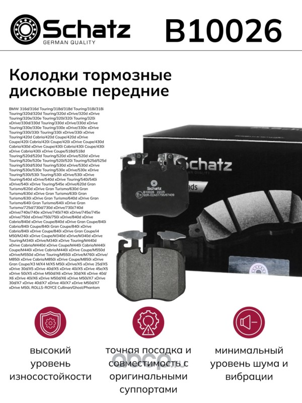 Schatz | B10026 | Колодки тормозные дисковые передние BMW 316d/316d Touring/318d/318d Touring/318i |
