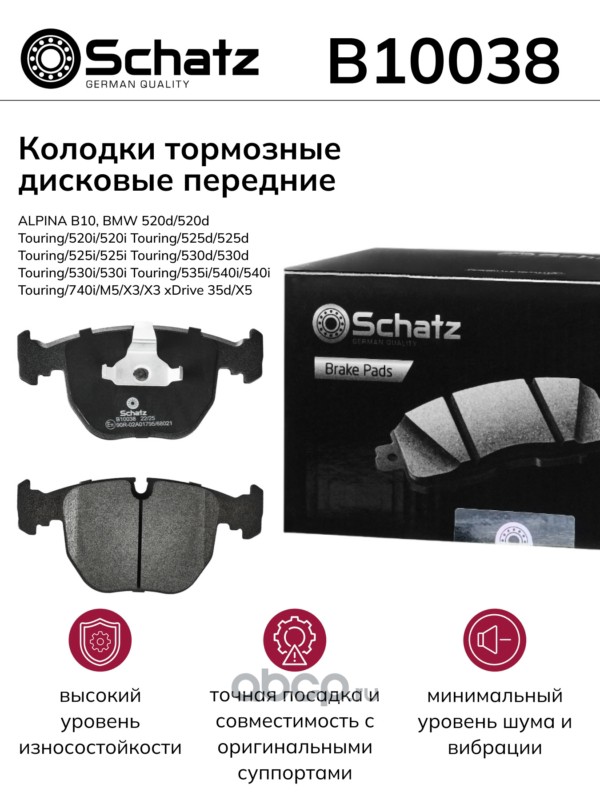 Schatz | B10038 | Колодки тормозные дисковые передние ALPINA B10, BMW 520d/520d Touring/520i |