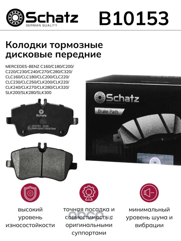 Schatz | B10153 | Колодки тормозные дисковые передние MERCEDES-BENZ C160/C180/C200/C220/C230/C240 |