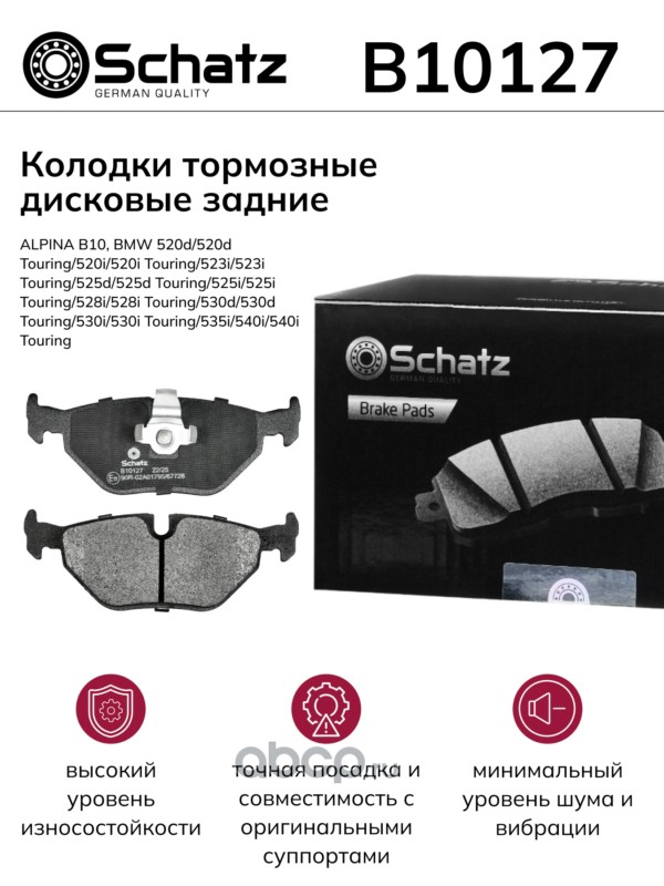 Schatz | B10127 | Колодки тормозные дисковые задние ALPINA B10, BMW 520d/520d Touring/520i/520i Tour |