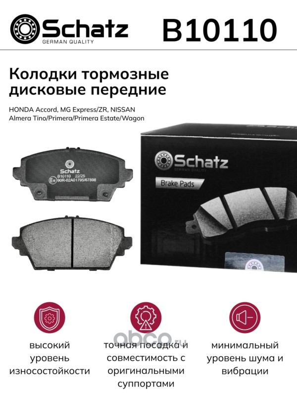 Schatz | B10110 | Колодки тормозные дисковые передние HONDA Accord, MG Express/ZR, NISSAN Almera |