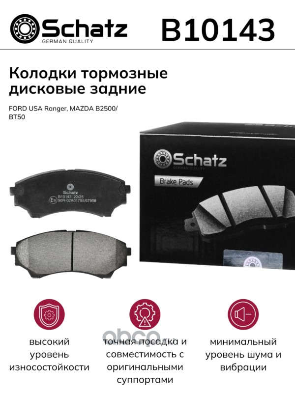 Schatz | B10143 | Колодки тормозные дисковые передние FORD USA Ranger, MAZDA B2500/BT50 |