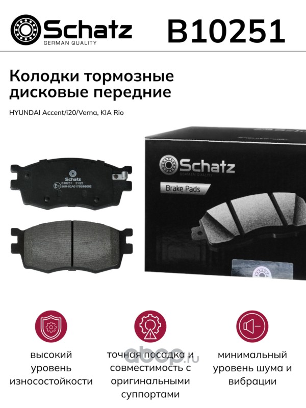 Schatz | B10251 | Колодки тормозные дисковые передние HYUNDAI Accent/i20/Verna, KIA Rio |