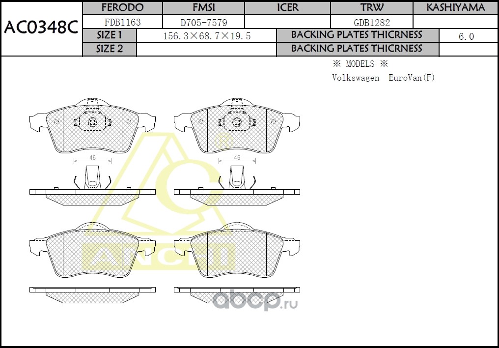 ANCHI | AC0348C | Тормозные колодки дисковые |