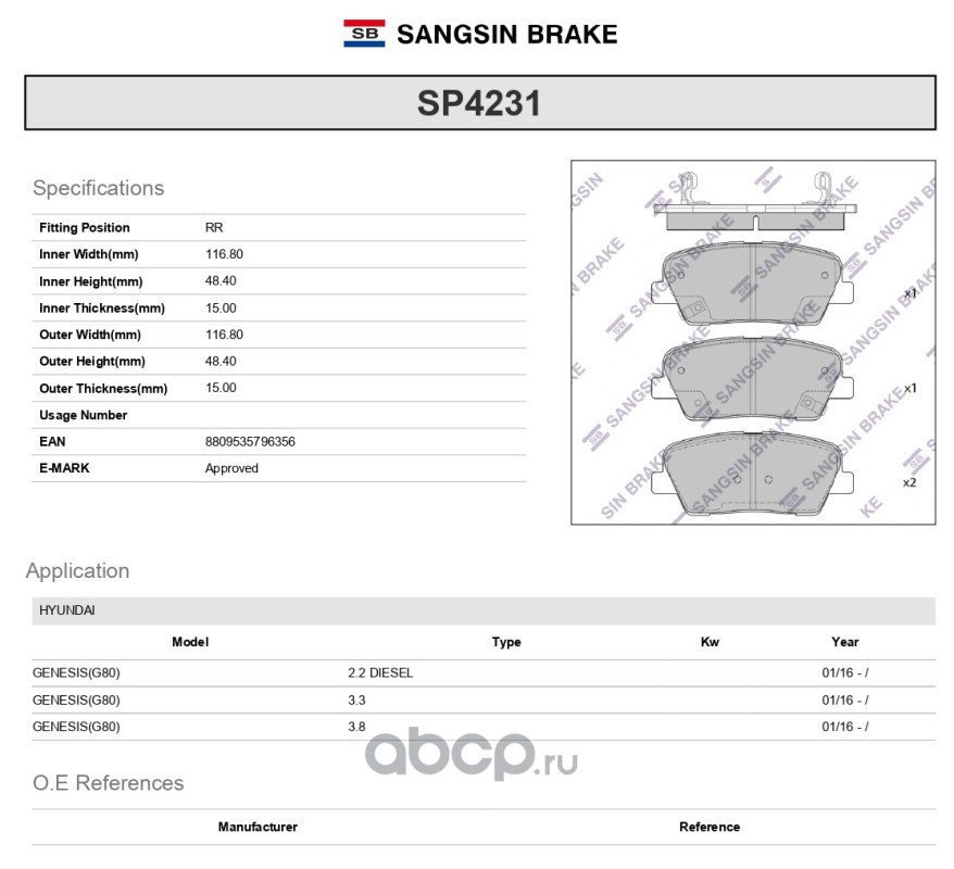 Sangsin brake | SP4231 | Колодки тормозные задние |