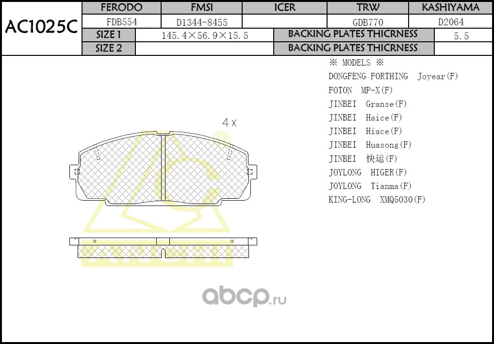 ANCHI | AC1025C | Тормозные колодки дисковые |