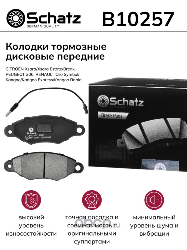 Schatz | B10257 | Колодки тормозные дисковые передние CITROËN Xsara/Xsara Estate/Break, PEUGEOT 306, |