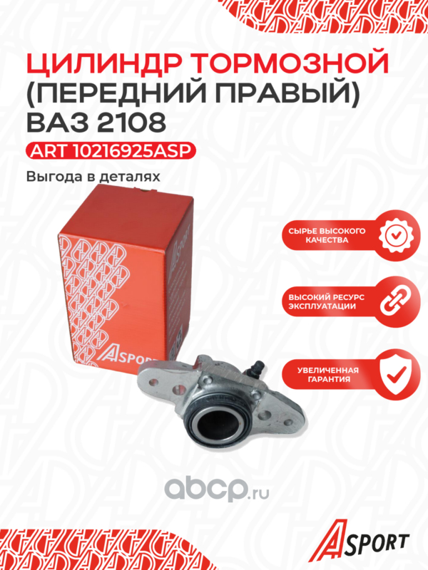 A-SPORT | 10216925ASP | Цилиндр тормозной передний правый для а/м ВАЗ 1117-19; 2108-099; 2110-12; 2113-2115;2170-72; 2190-94, уп 1 шт. |