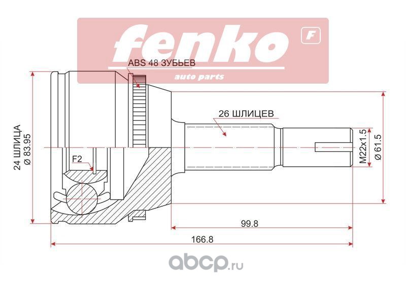 FENOX | CV16351 | ШРУС 26/24шл, наружный, ABS 48 зуб |