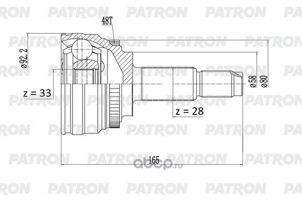 нар. лев./прав. 28x58x33 ABS:48T CHERY Tiggo 7 Pro / OMODA C5 / Exeed RX 23-