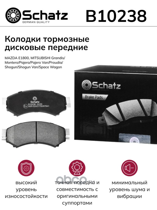 Schatz | B10238 | Колодки тормозные дисковые передние MAZDA E1800, MITSUBISHI Grandis/Montero/Pajero |