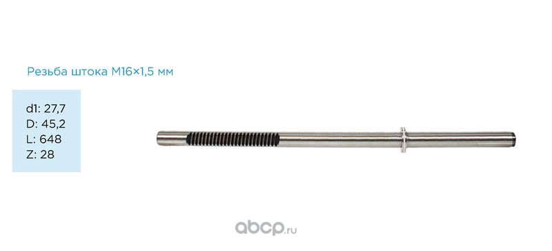 Вал продольный для гидравлической рулевой рейки Hyundai Porter H-100 2005-, Hyundai H100 1993-2004 d1: 27,7 D: 45,2 L: 648 Z: 28 Резьба штока M16×1,5 мм