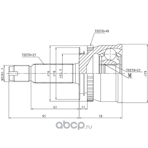 Kroner | K101105 | ШРУС (наруж.) [с ABS, 25/22] |