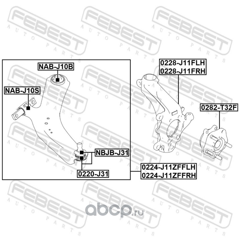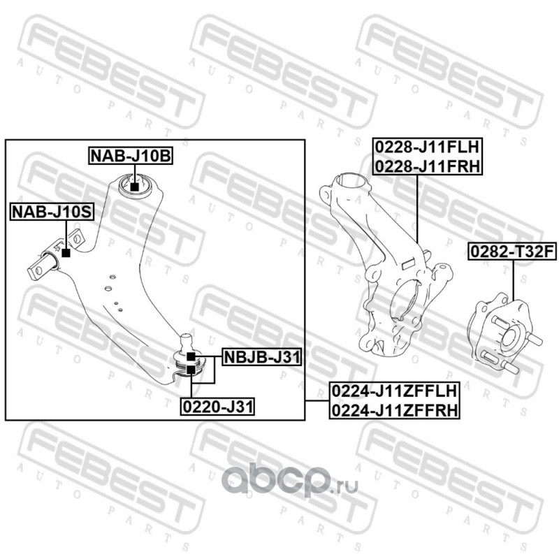 Febest | NABJ10S | Сайлентблок передний переднего рычага |