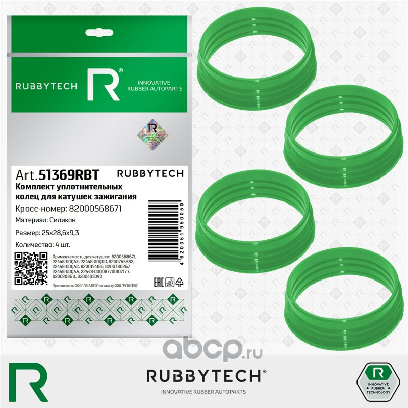 RUBBYTECH | 51369RBT | Кольца уплотнительные для катушки зажигания 4шт h=9,3 d=25 D=28,6 MVQ |